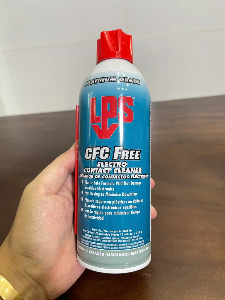 LPS 03116 CFC Free Electro Contact Cleaner là một chất tẩy rửa dạng dung môi, bay hơi nhanh, được thiết kế đặc biệt để làm sạch và tẩy dầu mỡ cho các linh kiện điện, điện tử và cơ cấu chính xác. Sản phẩm này không để lại cặn sau khi bay hơi và an toàn khi sử dụng trên hầu hết các loại nhựa.