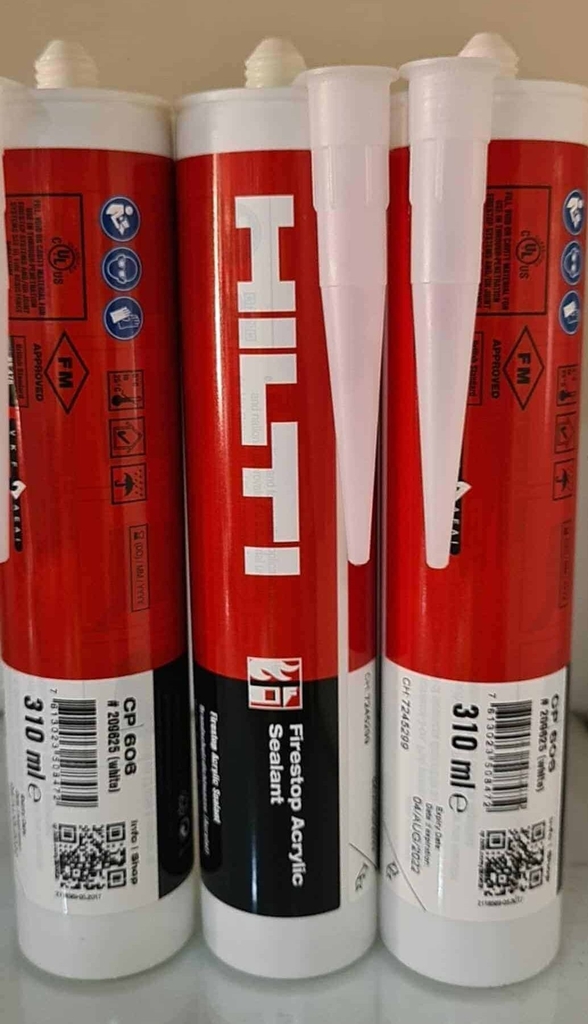 Chất làm kín ngăn cháy lan gốc acrylic Hilti CP 606, màu xám - 310ml. Đây là một sản phẩm chống cháy lan chuyên dụng của hãng Hilti (Đức), được thiết kế để ngăn chặn sự lan truyền của lửa, khói và khí độc qua các khe hở và lỗ xuyên qua trong các cấu trúc xây dựng.