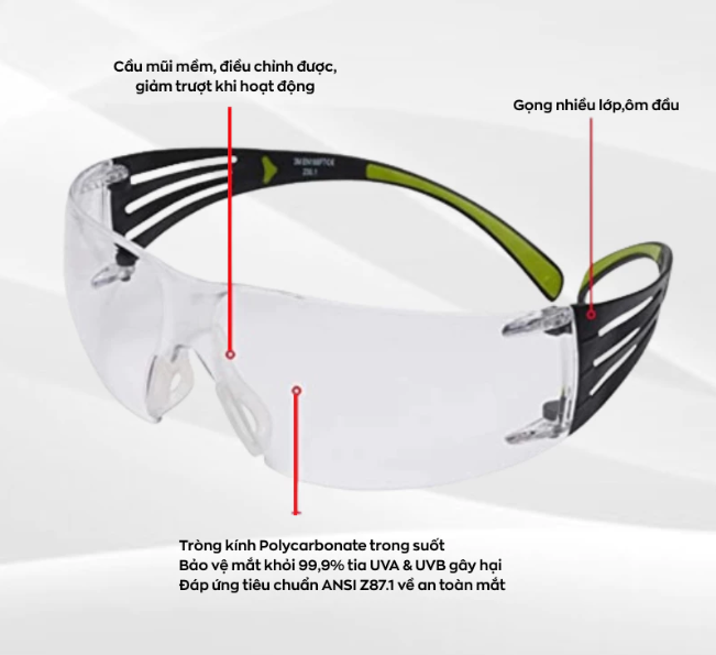 3M SecureFit™ SF401AF là một mẫu kính bảo hộ thuộc dòng SecureFit™ 400 Series nổi tiếng của 3M. Kính được thiết kế để mang lại sự thoải mái, vừa vặn tự động và bảo vệ mắt tối ưu trong môi trường công nghiệp và lao động.
