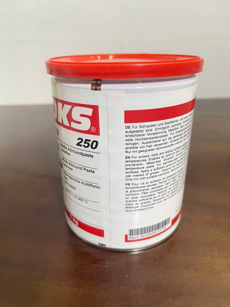 Sử dụng bàn chải, dao trộn hoặc dụng cụ tương tự để bôi lượng OKS 250 vừa đủ lên bề mặt tiếp xúc của đầu hoặc đai ốc và với chỉ. Keo dán cũng sẽ hoạt động như một chất bịt kín.